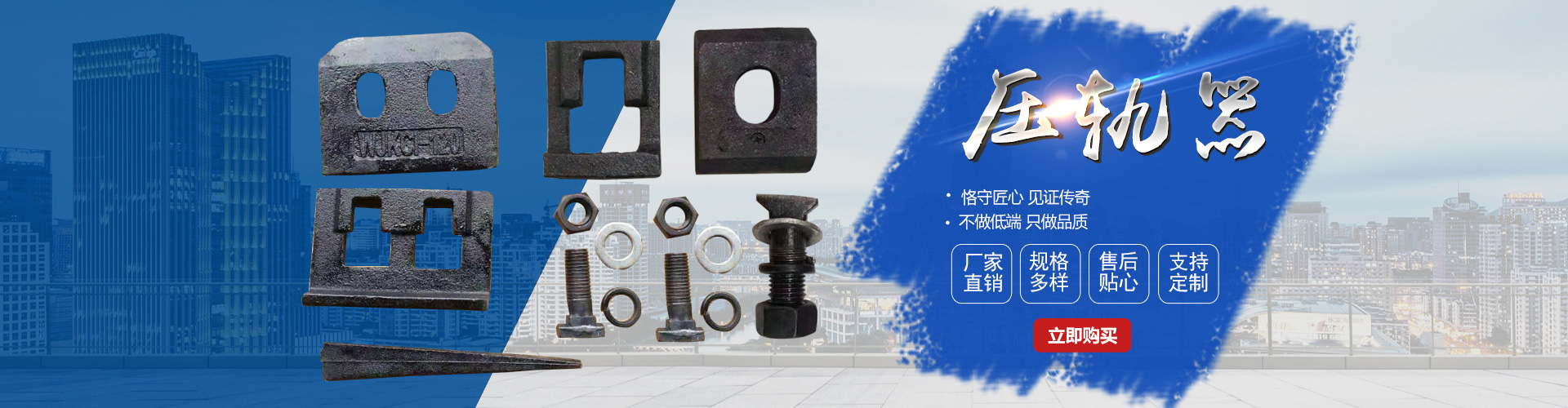 主要產(chǎn)品:鐵路配件、行車配件、工礦配件、魚尾板、道釘、壓軌器、軌道壓板、軌距拉桿、護(hù)軌扣板、T型螺栓、魚尾螺栓、彈條、軌距擋板